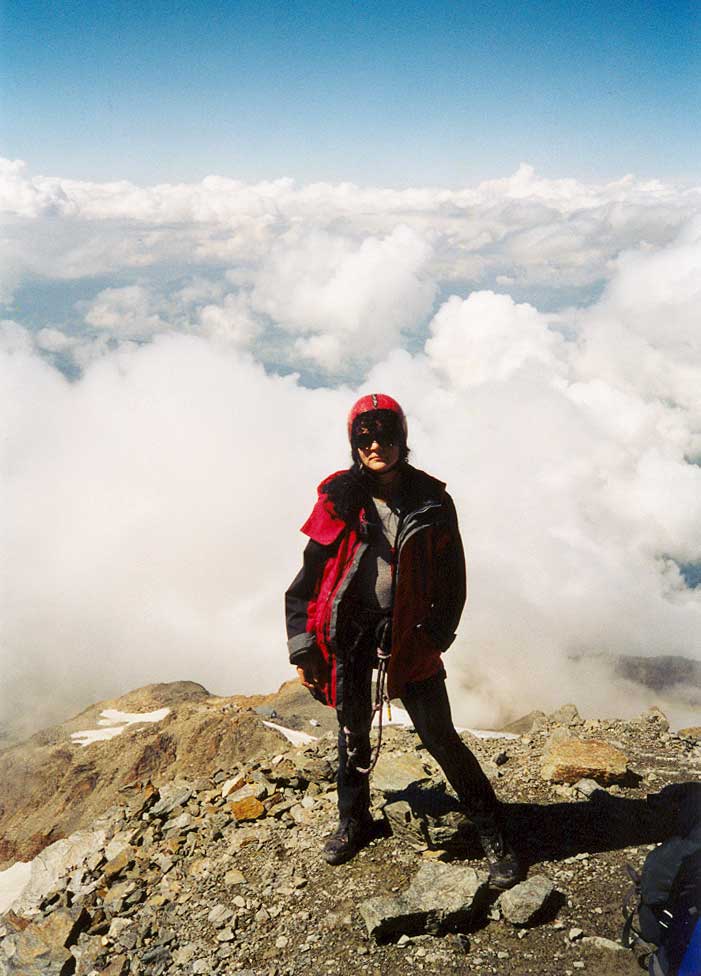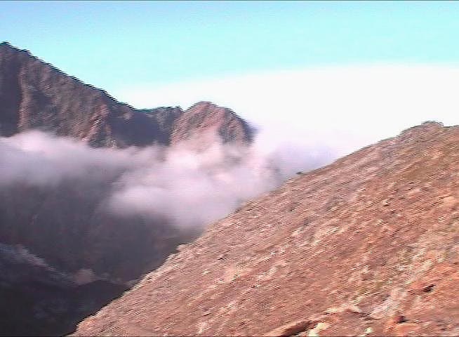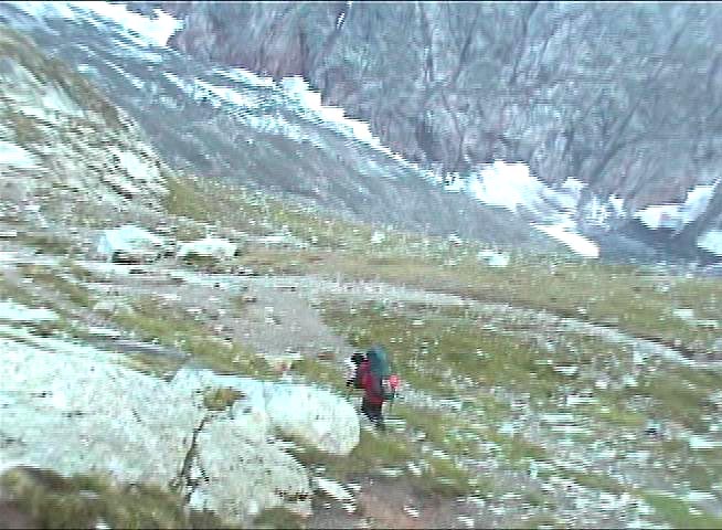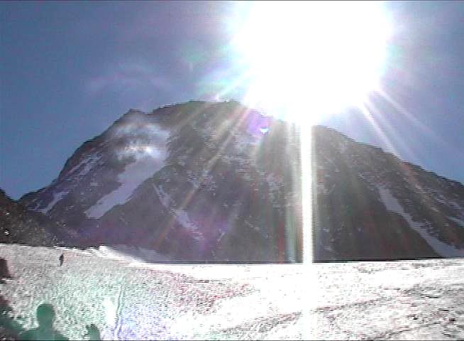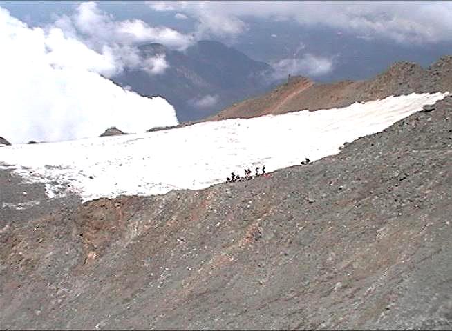 v 3167 m., ale rozhodneme se až podle sil. Počasí je ucházející. Stoupáme pomalu a pozvolna. Míjíme