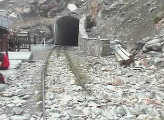 sedle Bellevue. Na horní stanici zubačky je plno lidí, tu my však míjíme a pokračujeme pěšky.