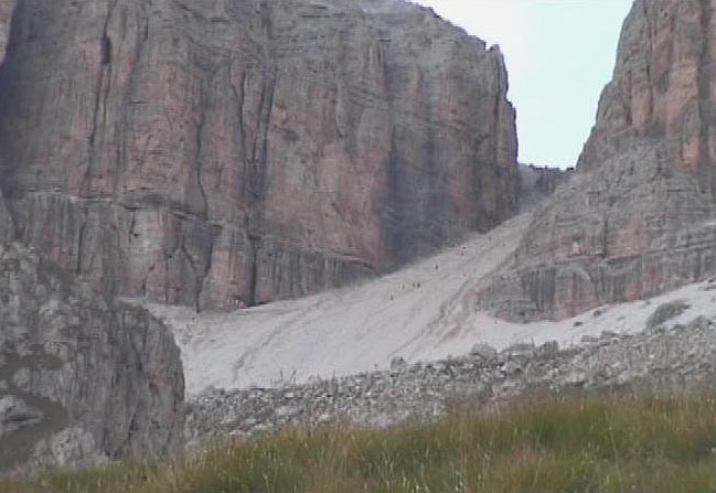 Jedeme po dálnici na BOLZANO a sjíždíme u Brixenu směrem na BRUNICO .Pokoušíme se dostat co nejblíže k Marmoládě, ale bohužel špatně odbočujeme a po hodinové jízdě v nepřehledných horských silnicích vzdáváme další cestu a zastavujeme. Po jedenáctihodinové jízdě potřebuji nutně nějaký spánek. Kolem 13:00 hod.pokračujeme. Jedeme přes ARABBU do průsmyku PORDOI (2239 m). Tam zastavujeme a podnikáme první dolomitský výšlap na PORDOI SP. (2950 m). Odtamtud také poprvé vidíme Marmoládu v celé své kráse. Z vrcholu odcházíme sami, protože lanovka jezdí asi do 17:00 hod.Nikde nikdo.