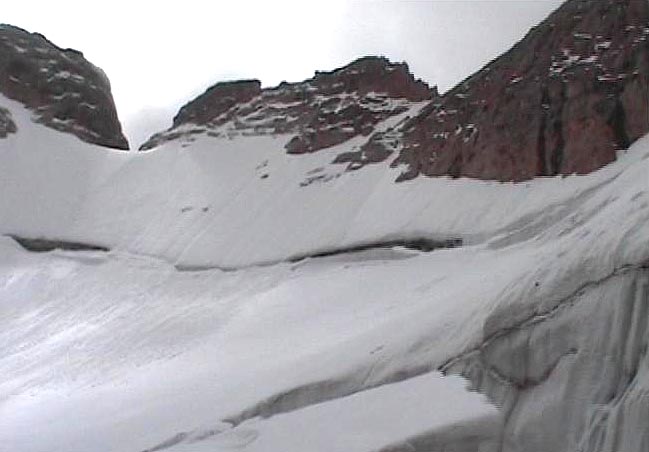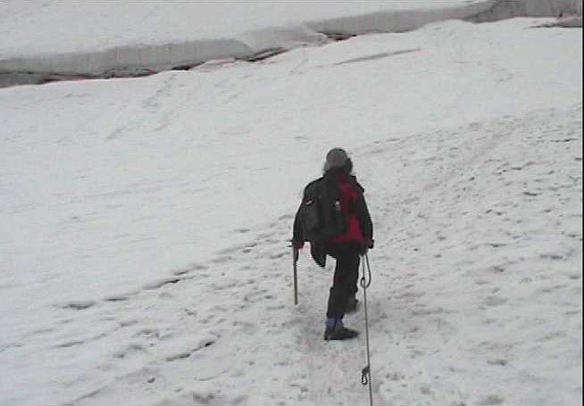 že není radno návrat oddalovat, svižně ale bezpečně sestupujeme. Ještě obejít trhlinky a je to.
