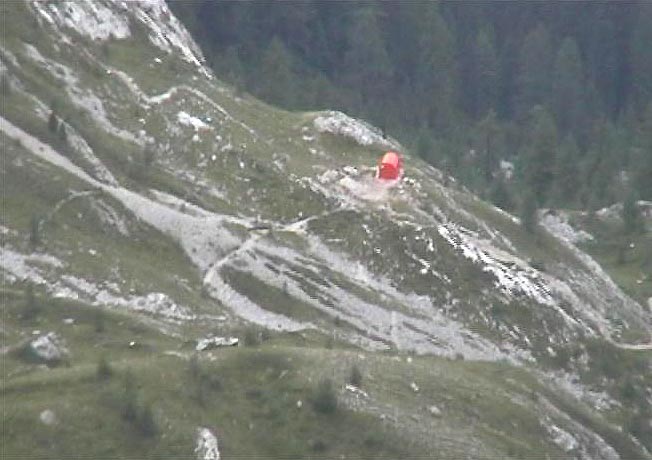 zkoušíme zdolat feratu "Franco Gadotti". Míjíme bivak "Zeni", v kterém jsme málem zůstali.