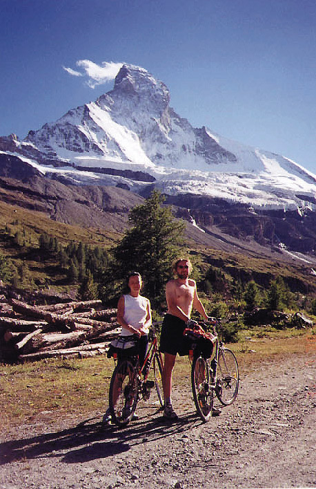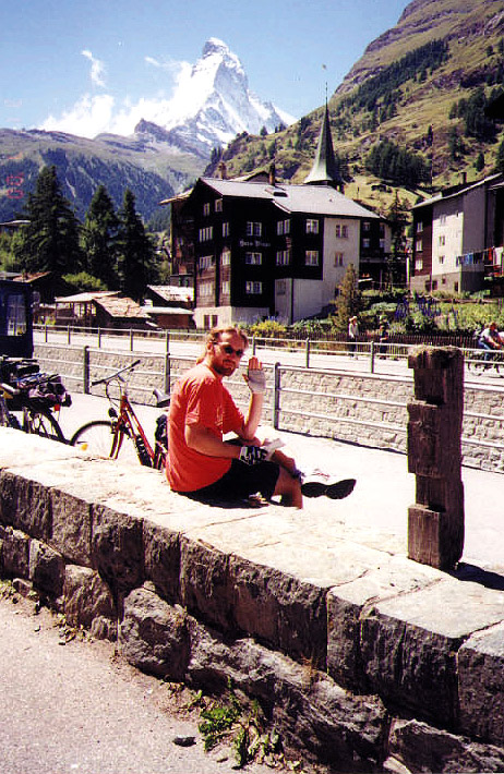 Taschu 1450m. Tady necháváme auto v kempu a na kolech vyrážíme do Zermattu 1616m.