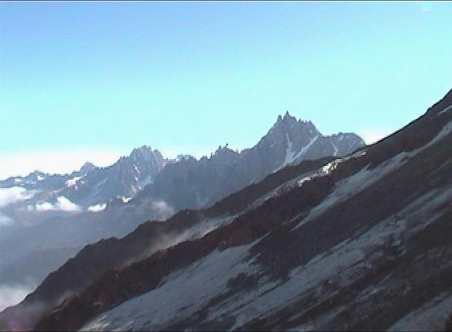 na nic, přesto lezeme dál.Kolem 15:00 hod dosahujeme chaty Gouter (3817 m). Nepředstavitelná makačka a