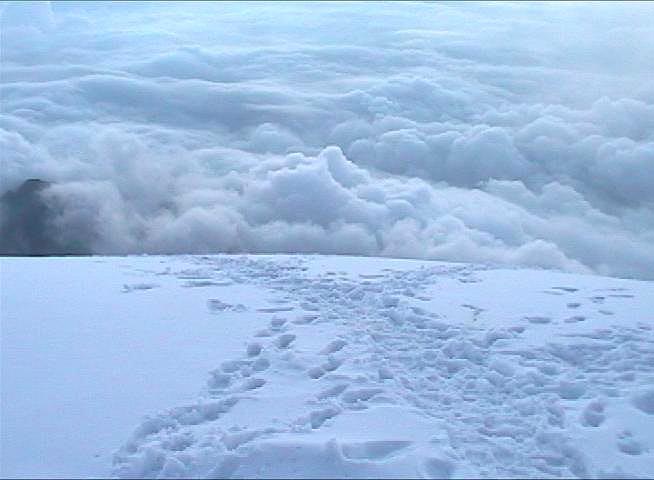 nadmořská výška je také znát. Ještě 50 metrů stoupáme po sněhovém svahu za chatou a jsme asi v nejvýše