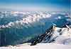 pohledem na masiv Mont Blancu a okolní hory. Fantazie.