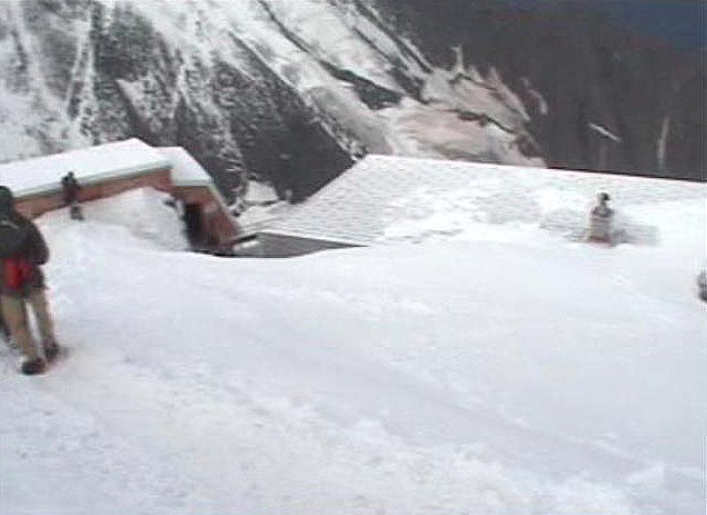 Lidí je opět mnoho. Kuloár je naštěstí opět v klidu a kolem 12:00 hod. jsme u chaty Tete Rousse.