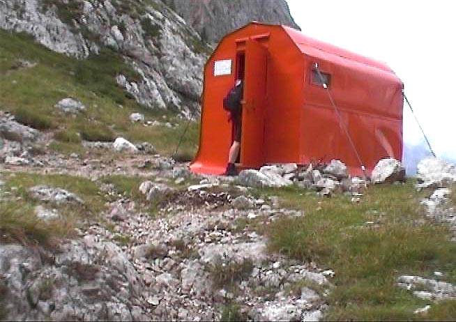 zkoušíme zdolat feratu "Franco Gadotti". Míjíme bivak "Zeni", v kterém jsme málem zůstali.